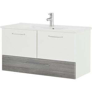 Weiß ist ein Allrounder bei Farbkombinationen. Sie können das weiße Bad mit einem Unterschrank aus hellem oder dunklem Holz oder Holzdekor kombinieren. Sehr schön wirken auch Modelle mit Weiß plus Holzdekor an den Seiten oder für die Türen. Wenn Sie mehr auf Farben setzen möchten, dann entscheiden Sie sich doch für Unterschränke in Weiß-Blau, Weiß-Anthrazit, Weiß-Rot, Schwarz-Weiß, oder Weiß und Gelb. Die schönen Beschichtungen bei den MDF-Modellen erlauben jede Einfärbung.
