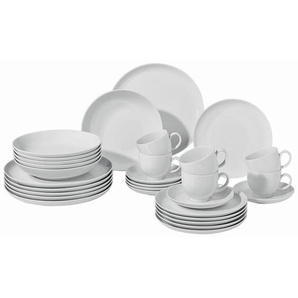 Das kommt darauf an, wie das Service vom Hersteller angeboten wird. Nicht immer gibt es auch Einzelteile des gleichen Geschirrs zu kaufen. Allerdings finden Sie große Ausstattungen, bei denen beispielsweise noch Eierbecher, Soßenkännchen und Milchkännchen zum Kaffeeservice inklusive sind. Wenn Sie damit rechnen, mehr Geschirrteile zu brauchen, empfehlen wir gleich ein Kombiservice in einer möglichst umfangreichen Ausstattung zu bestellen.