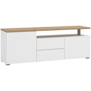 P & B Lowboard D140, Eiche Wotan, Weiß Hochglanz, Holzwerkstoff, 140x30x33 cm, Fsc, Made in EU, stehend, hängend, Beleuchtung, in verschiedenen Holzdekoren erhältlich, Wohnzimmer, Wohnwände, Lowboards, Lowboards stehendvon XXXLutz